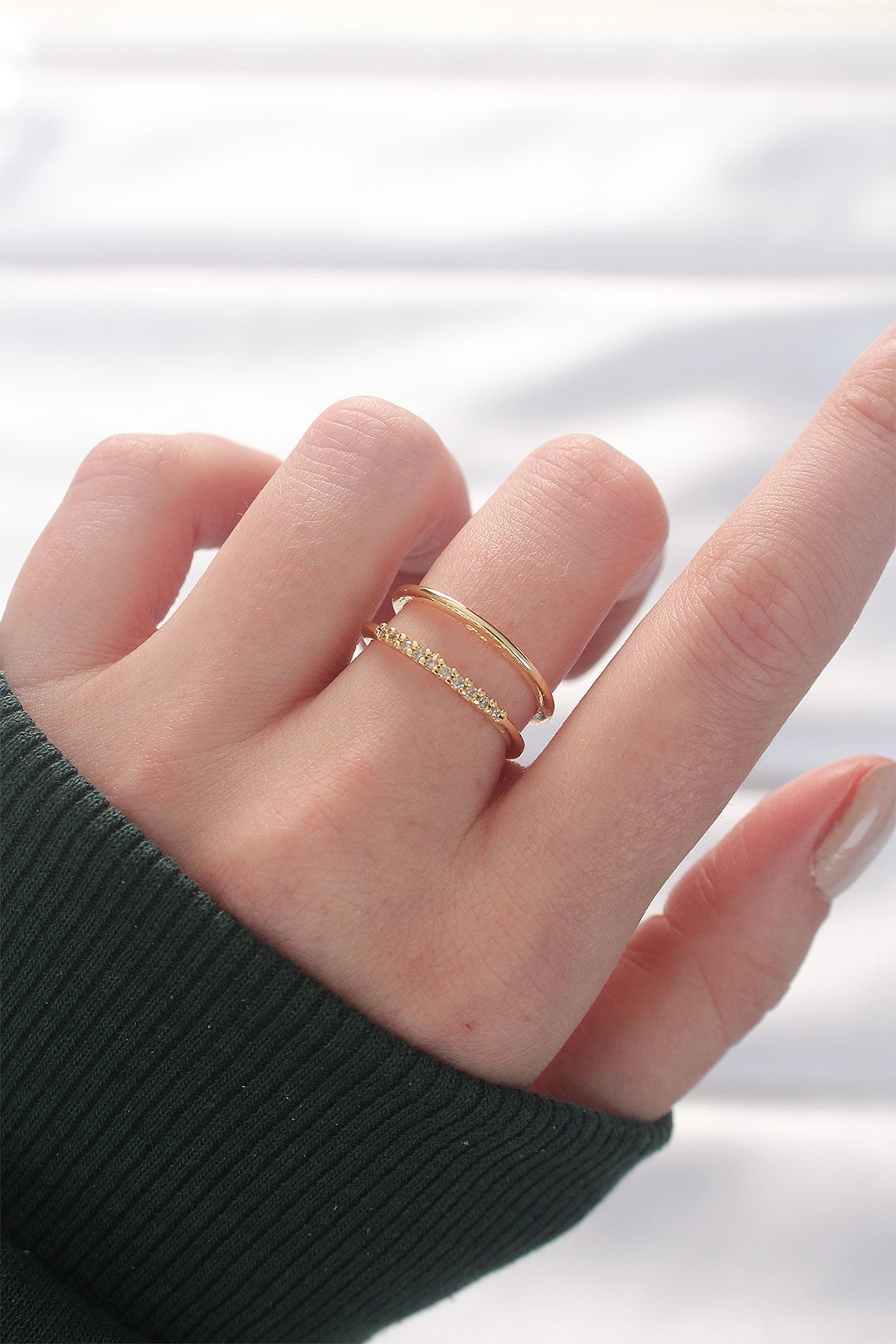 2li Görünümlü Su Yolu Tasarımlı Gold Renk Ayarlanabilir Yüzük