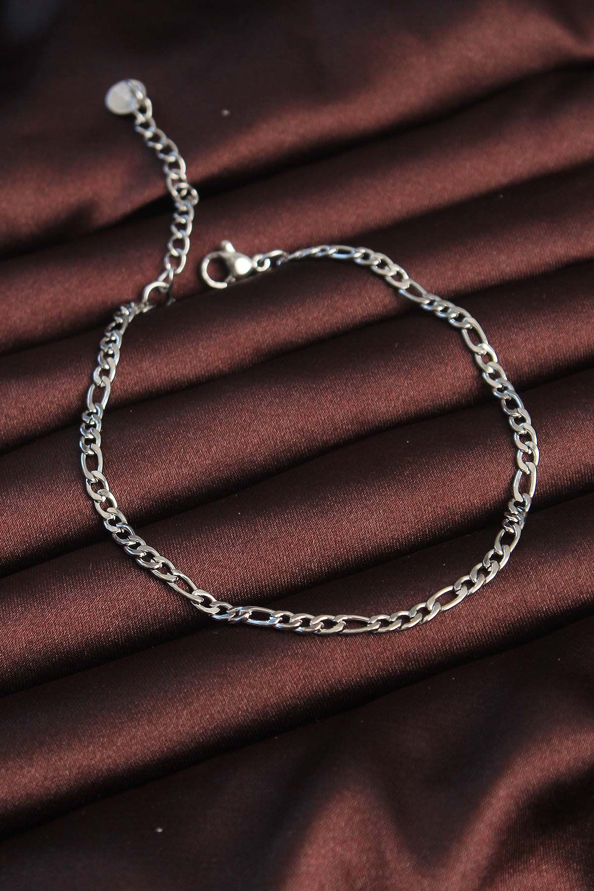 316L Çelik Gümüş Renk Kuş Gözü Erkek Zincir Bileklik