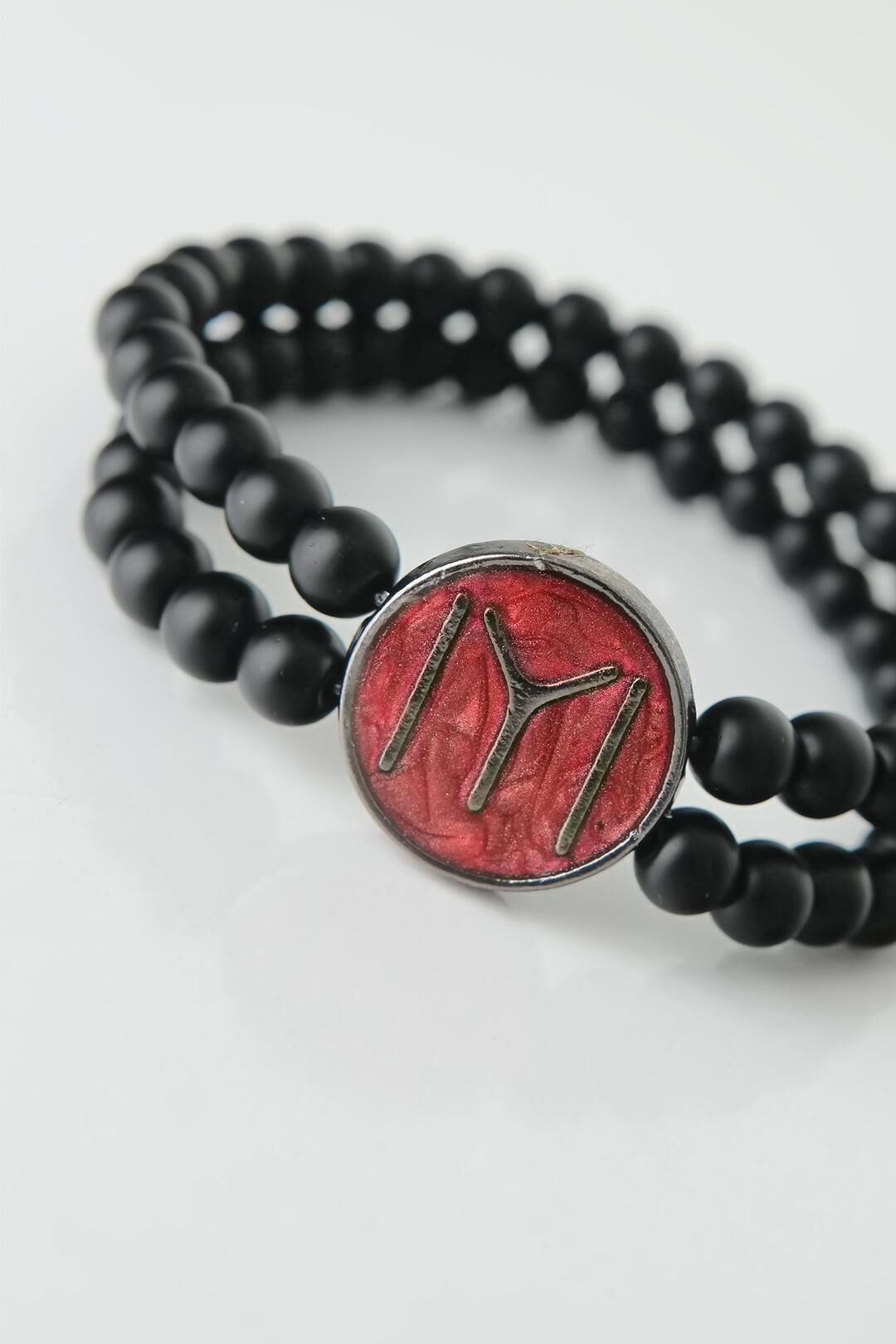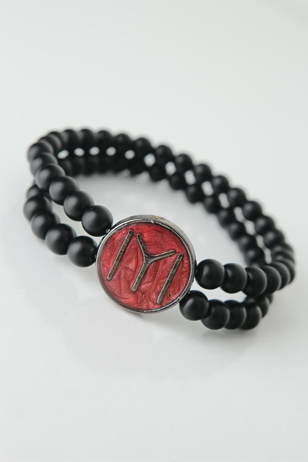 Siyahın bordoya uyumununu yansıtan Bordo Metal Üzerine Füme Kayı Boyu Figürlü Siyah Renk Çift Sıra Doğal Taş Erkek Bileklik tasarımına hemen sahip olun.