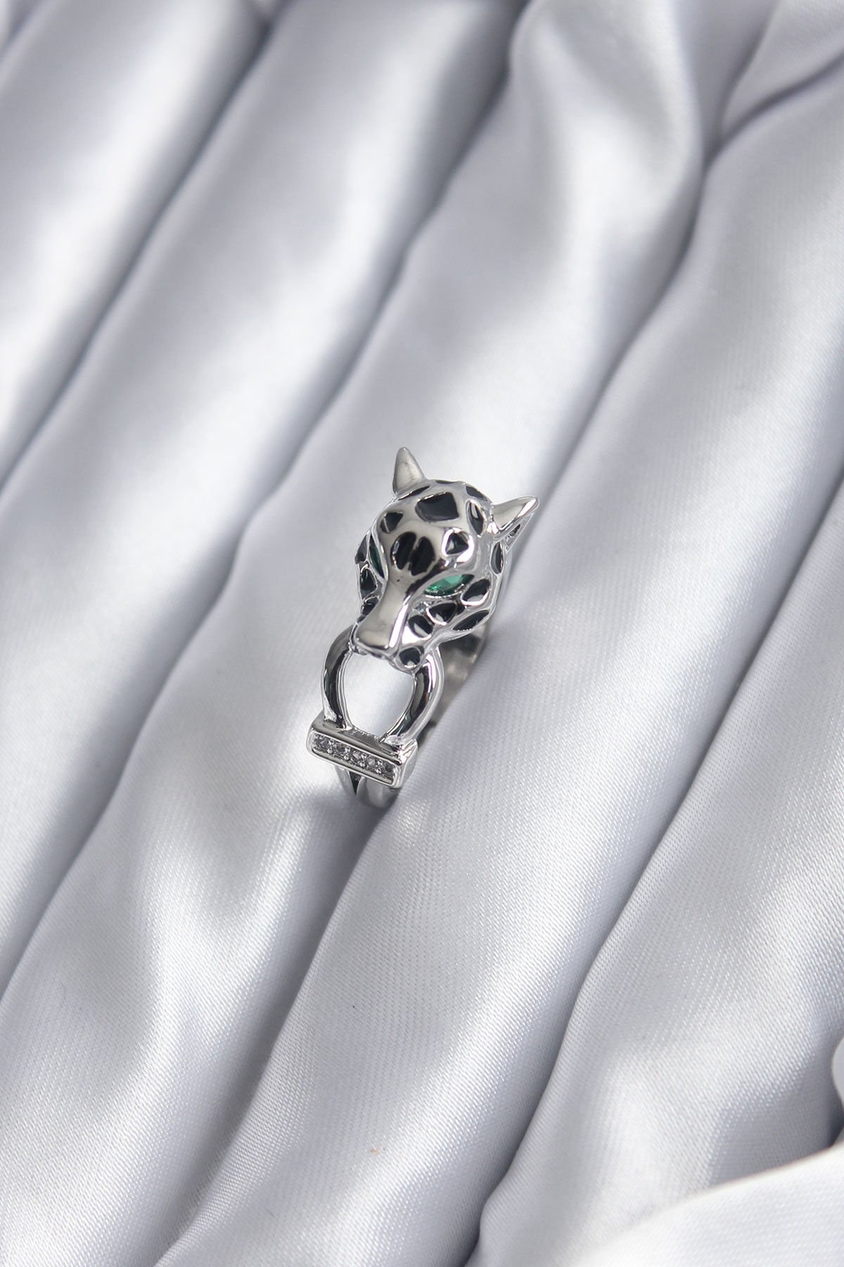Gümüş Renk Kaplan Model Zirkon Taş Detay VİP Kadın Yüzük