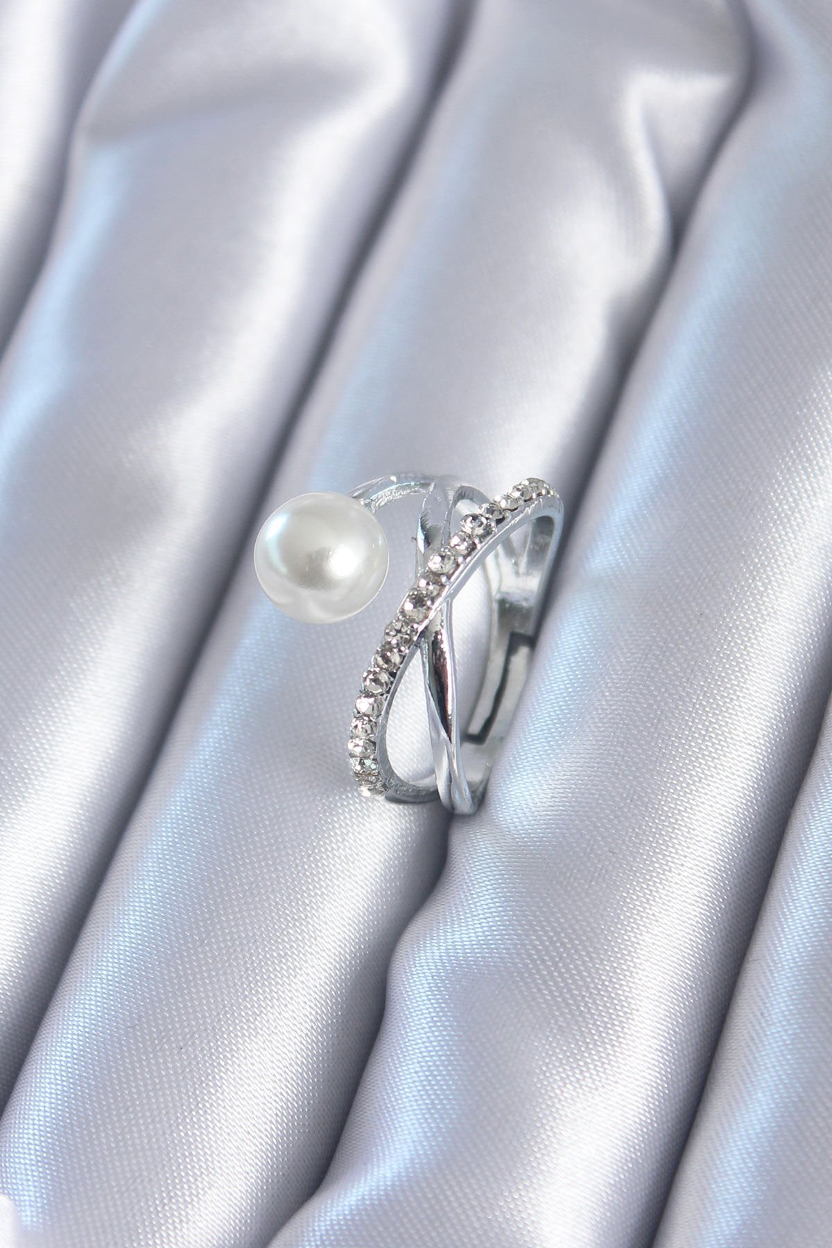 Gümüş Renk Zirkon Taşlı İncili Kadın Yüzük