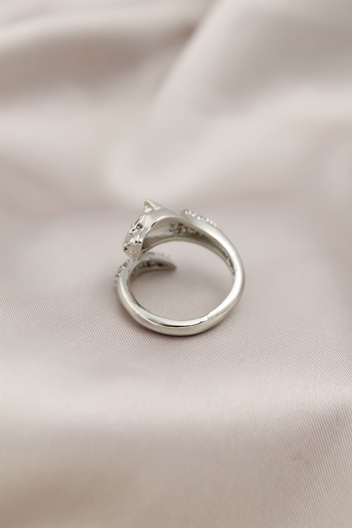 Gümüş Renkli Metal Kaplan Model Zirkon Taşlı Kadın Yüzük