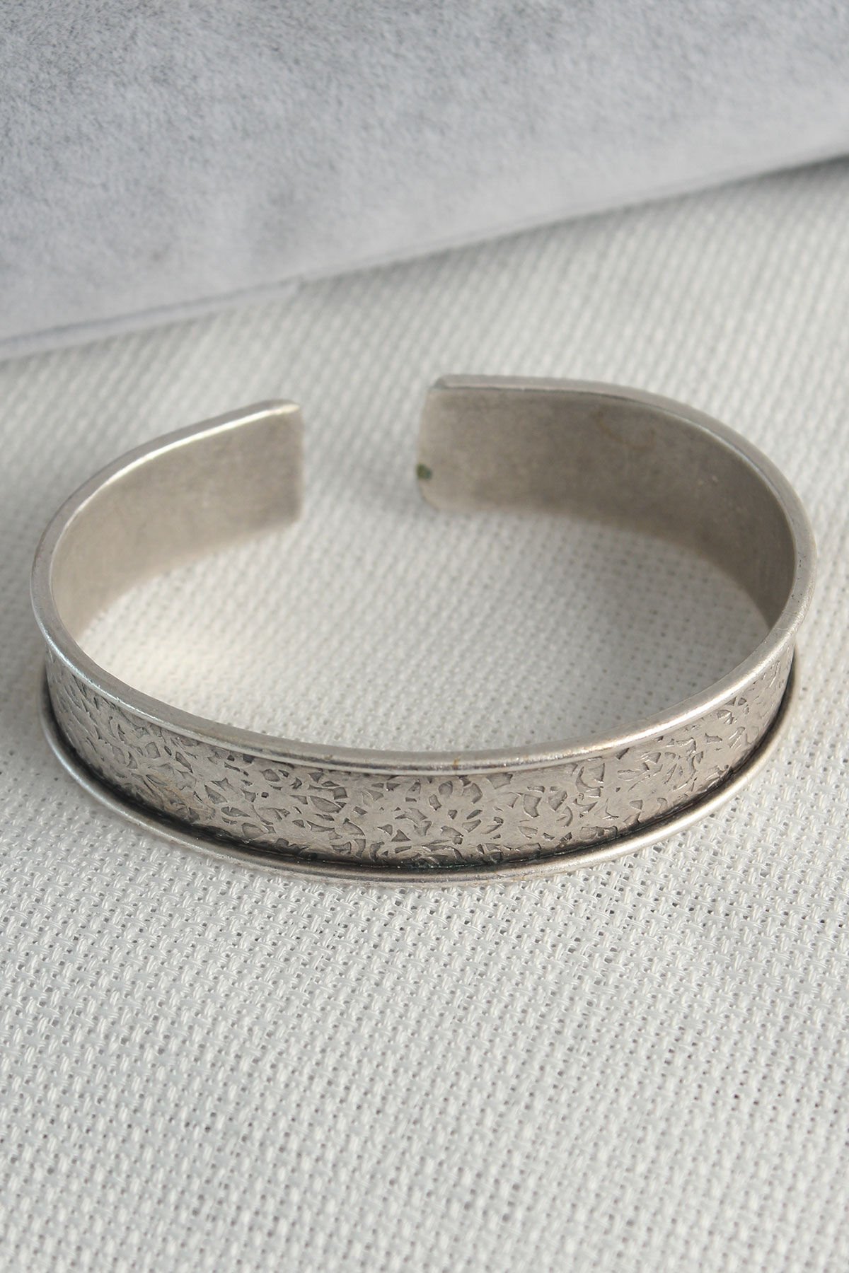 Otantik Gümüş Renk Motif İşleme Detay Plaka Erkek Bileklik