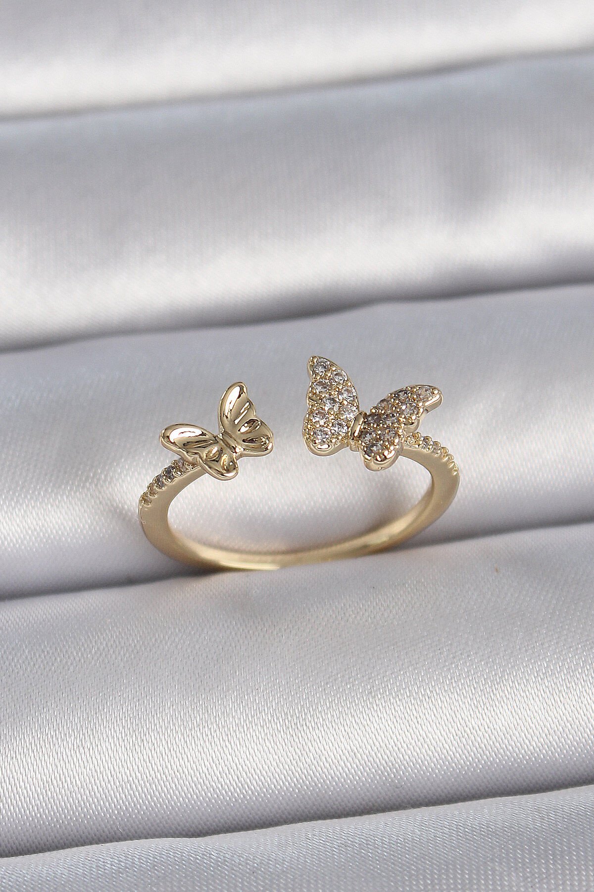 Pirinç Gold Renk Ayarlanabilir Zirkon Taşlı Kelebek Model Kadın Yüzük