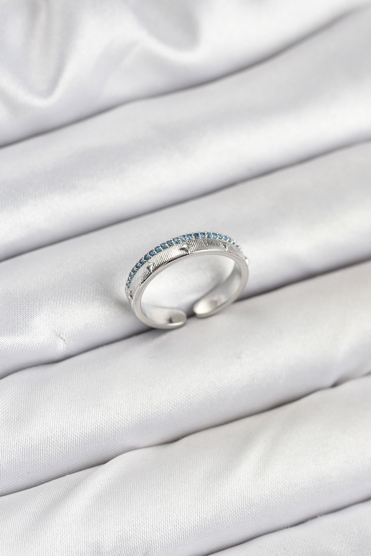Pirinç Gümüş Renk Sıralı Zirkon Taşlı Kutup Yıldızı Model Kadın Yüzük