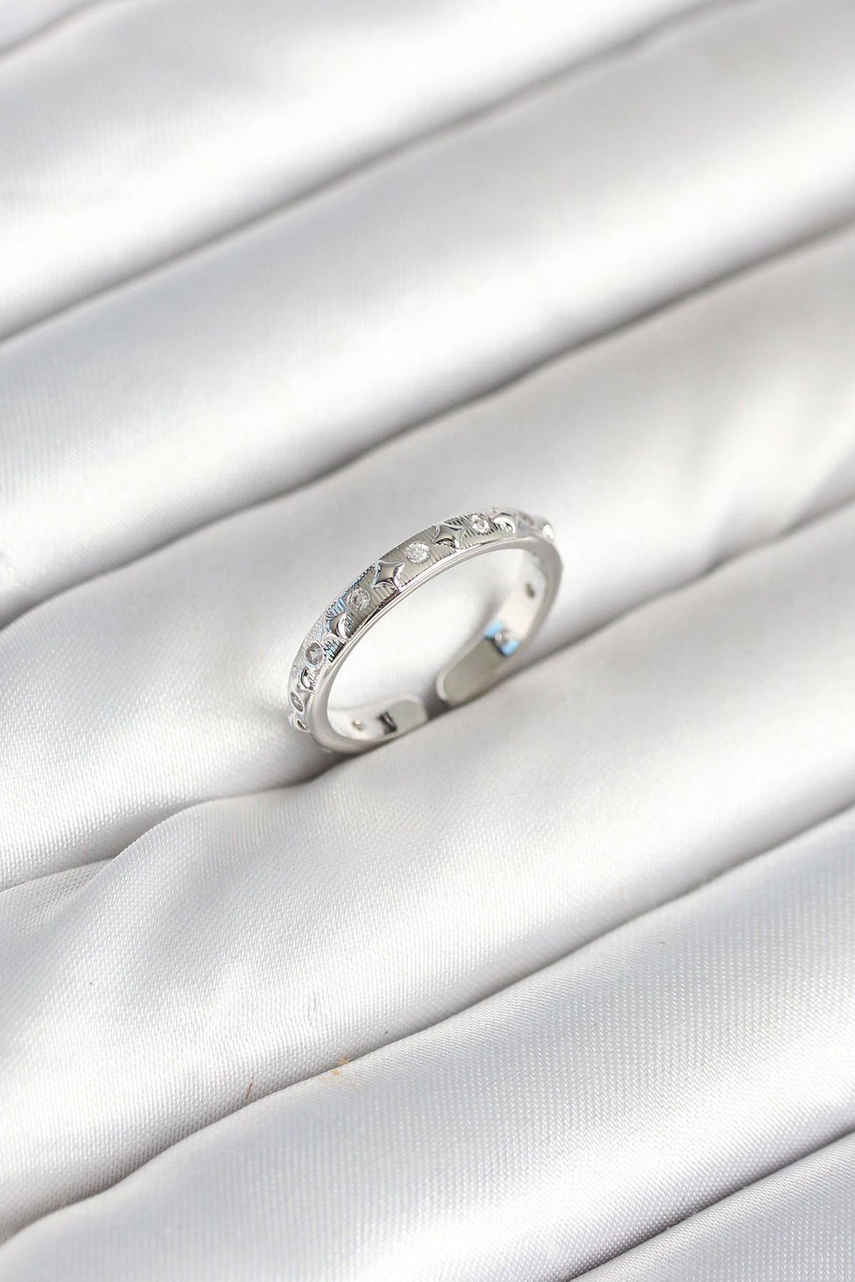 Pirinç Gümüş Renk Zirkon Taşlı Kadın Yüzük