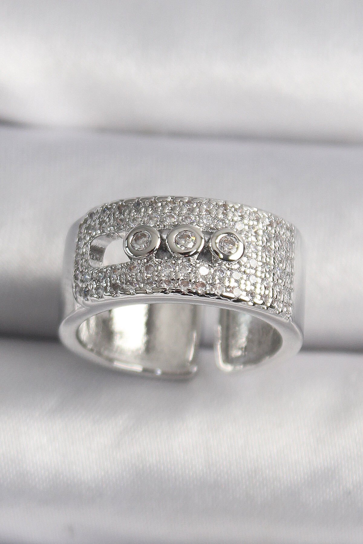 Pirinç Gümüş Renk Zirkon Taşlı Messika Model Kadın Yüzük