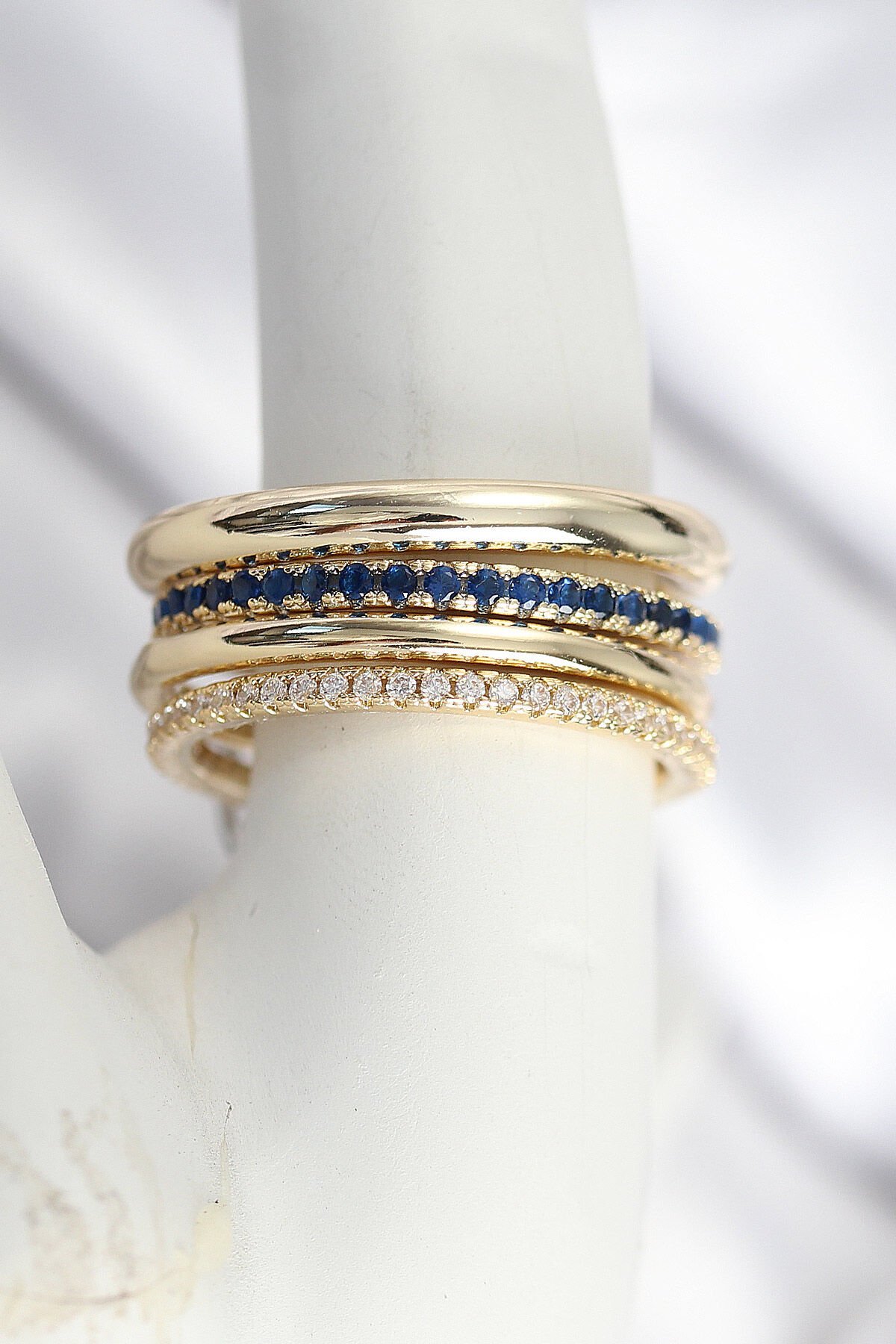 Pirinç Zirkon Taşlı Mix Renk 3'Lü Kadın Yüzük