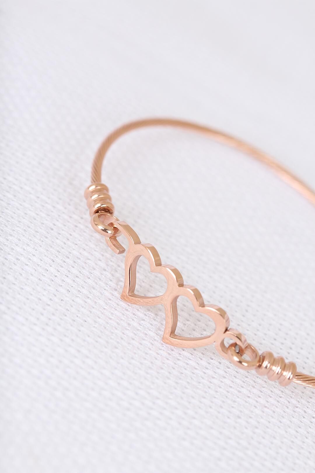 Rose Çelik Çift Kalp Figürlü Erkek Kelepçe Bileklik