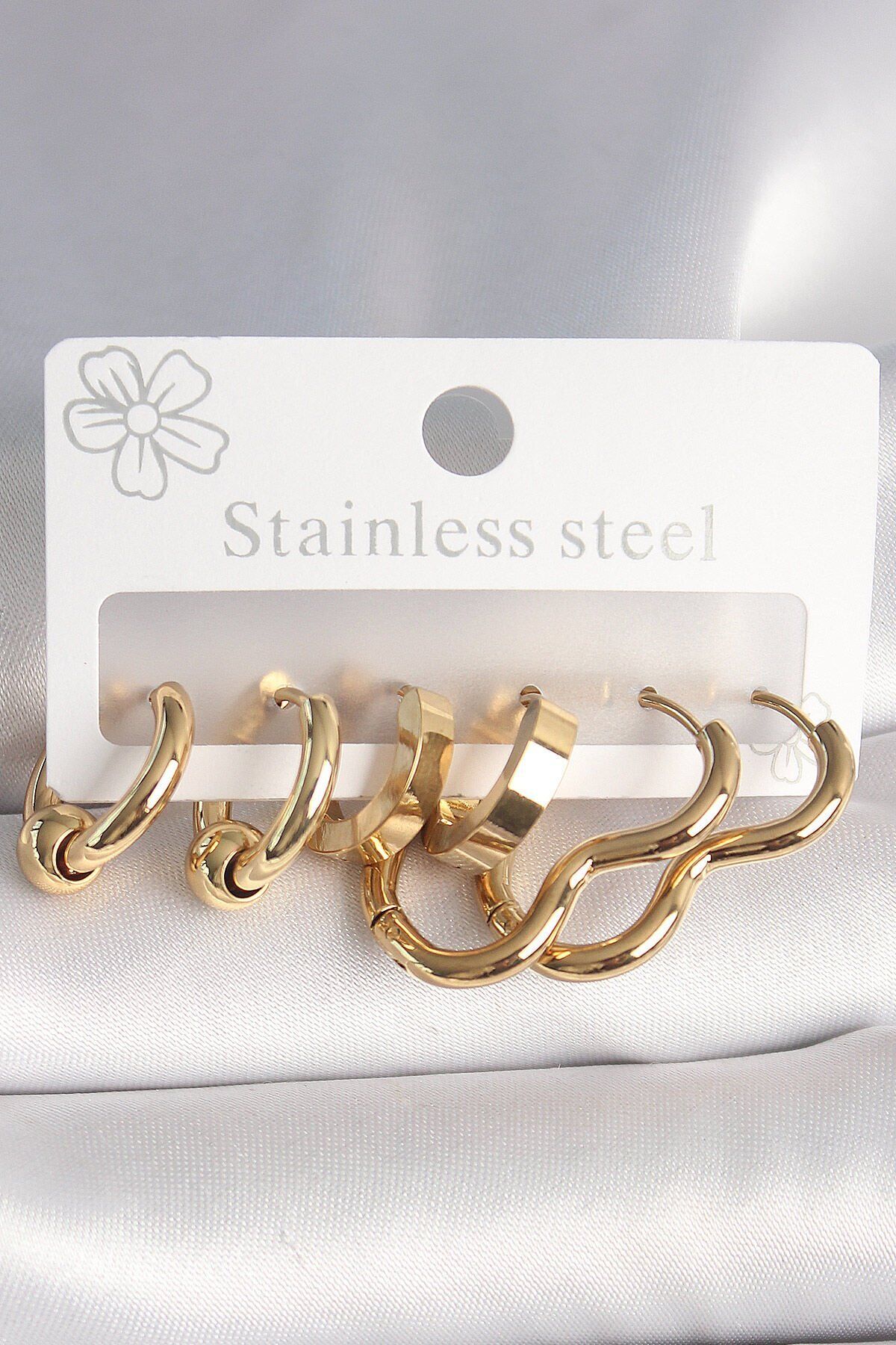 316L Çelik Gold Renk Kalp Halka Model Kadın Küpe Seti