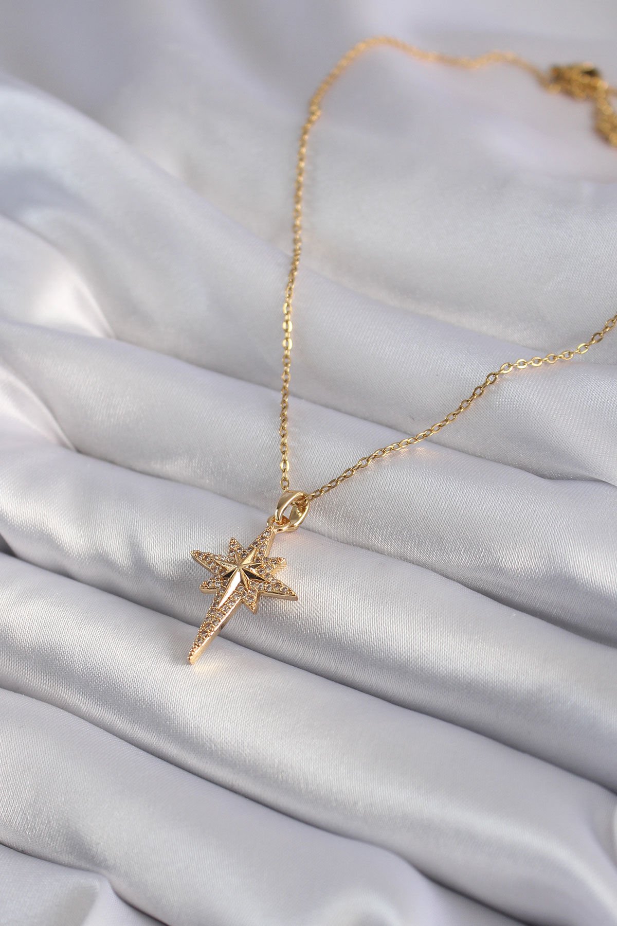 316L Çelik Gold Renk Zirkon Taşlı Kutup Yıldızı Model Kadın Kolye