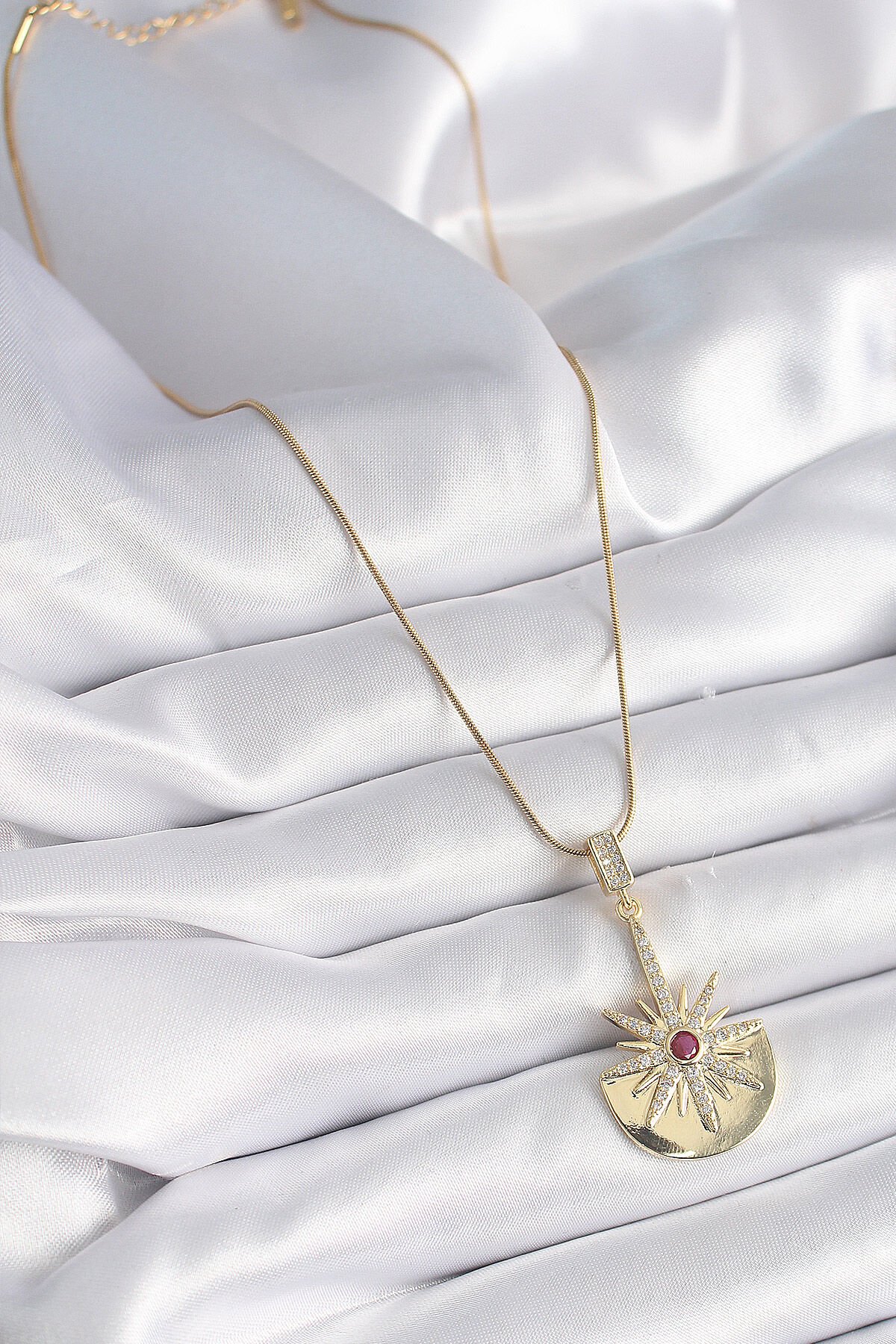 316L Çelik Gold Renk Zirkon Taşlı Yıldız Model Kadın Kolye