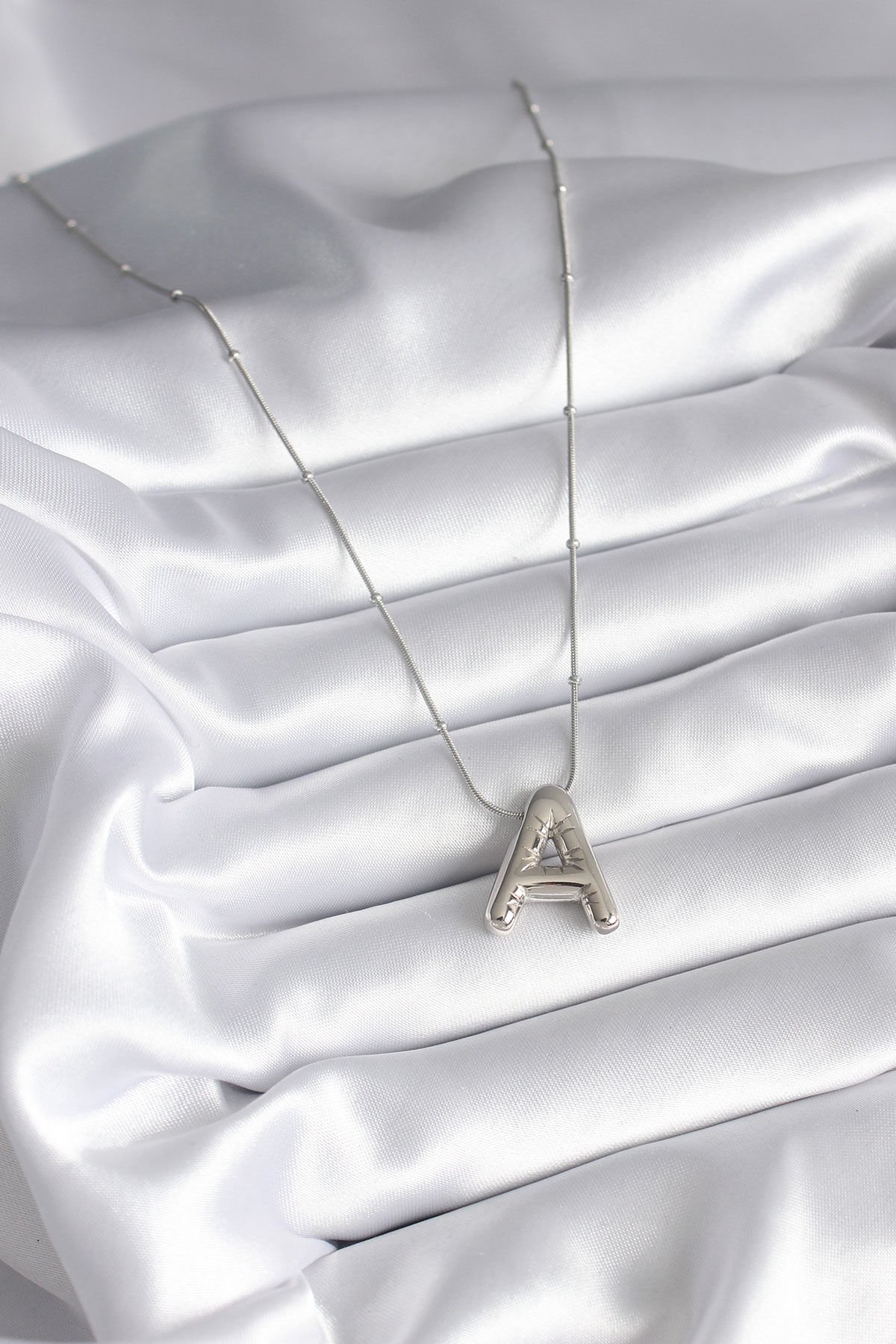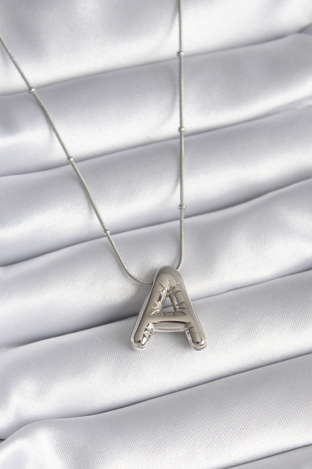 316L Çelik Gümüş Renk Bubble ''A'' Harf Model Kadın Kolye