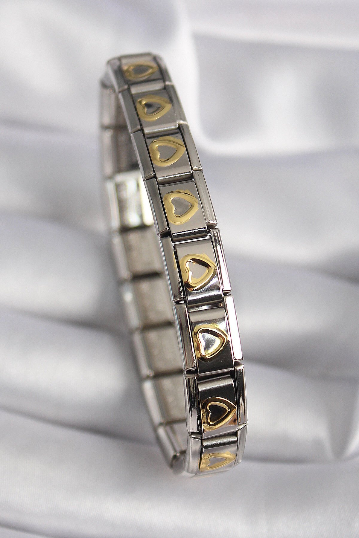 316L Çelik Gümüş Renk Gold Kalp İşleme Nomination Model Kadın Bileklik