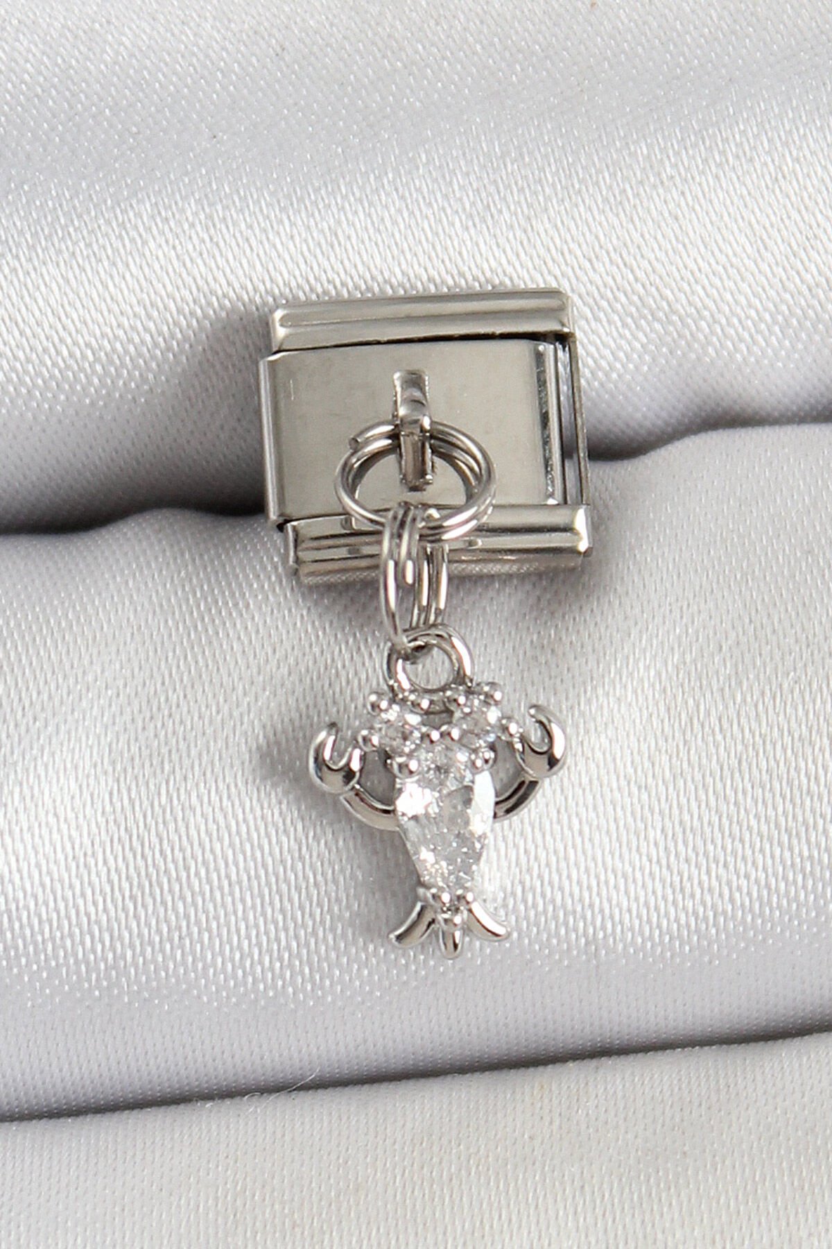 316L Çelik Sallantılı Zirkon Taşlı Yengeç Model Gümüş Renk Nomination Charm