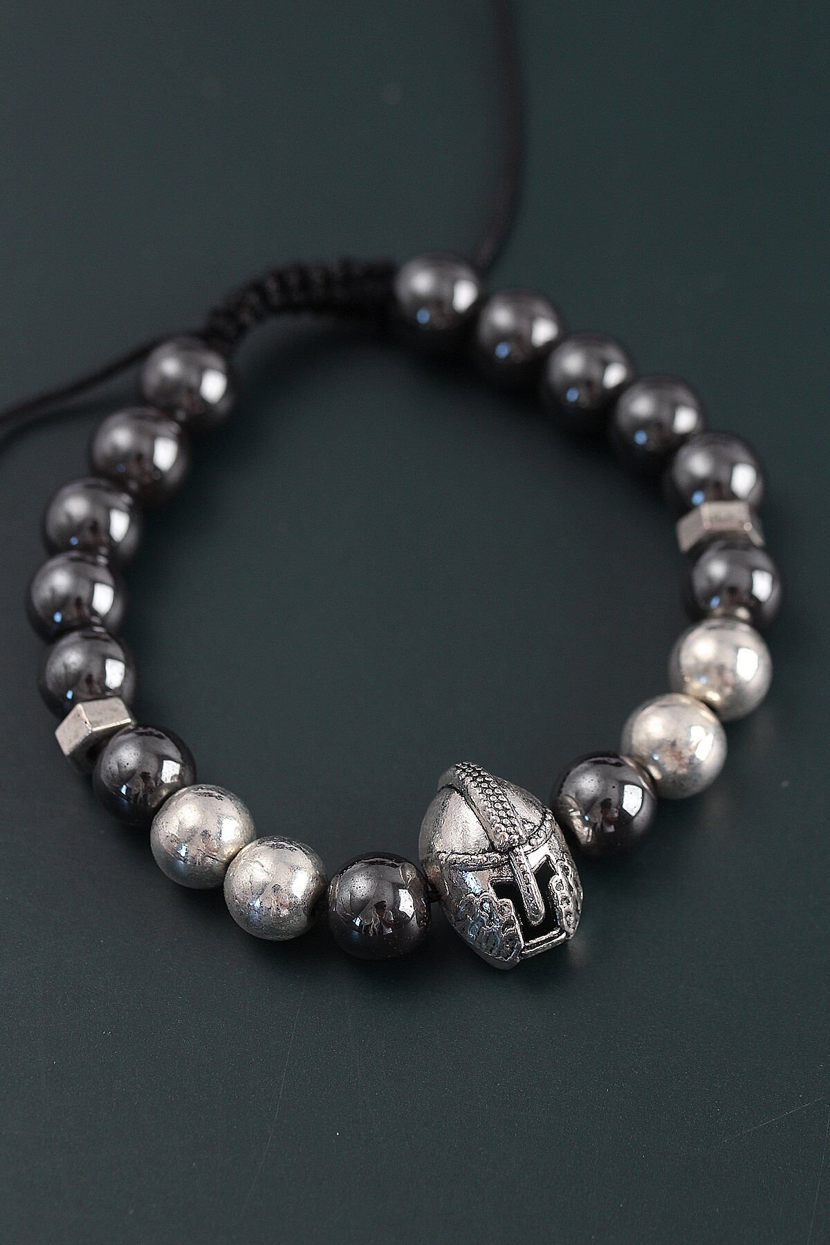 Doğal Taş Gladyatör Model Gümüş Ve Füme Renk Asansörlü Erkek Bileklik
