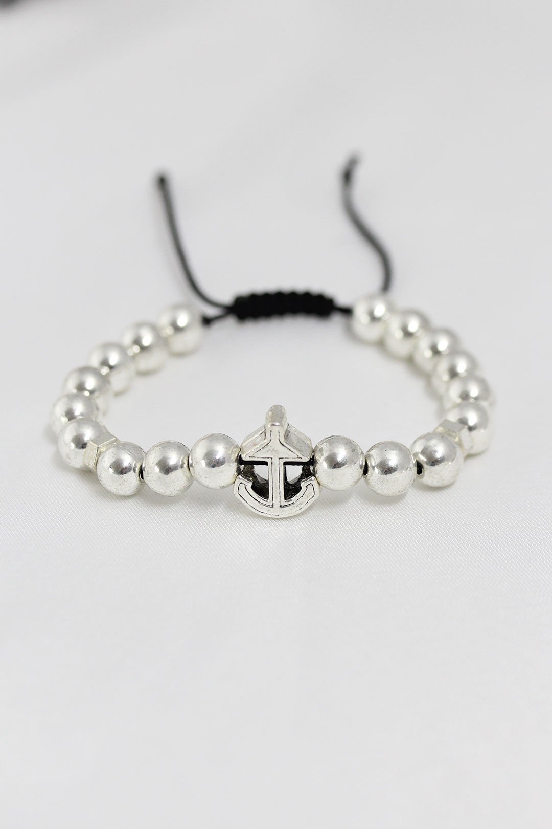 Gümüş Renk Çapa Figürlü Asansörlü Erkek Bileklik