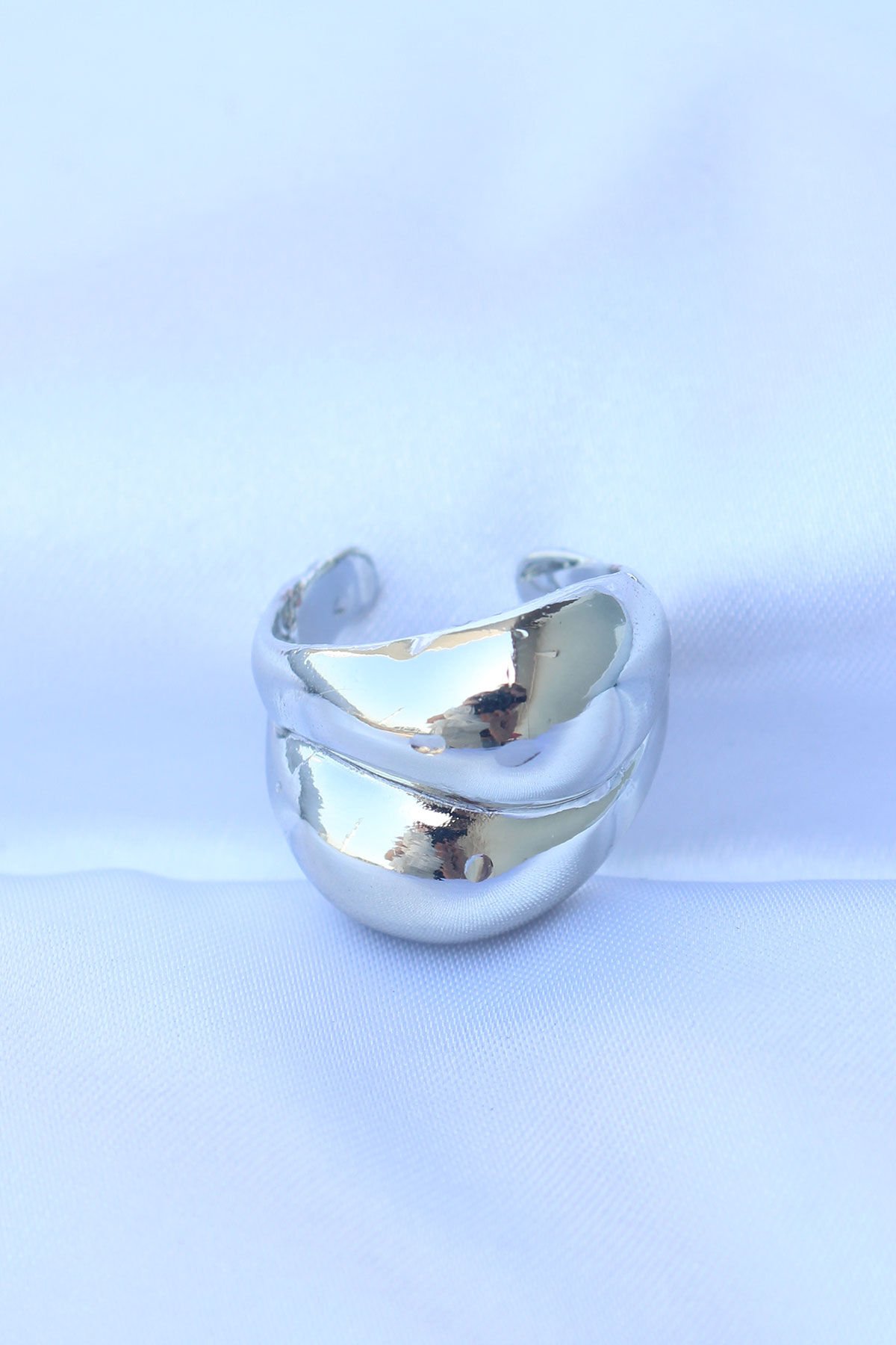 Pirinç Gümüş Renk Ayarlanabilir Damla Yüzük