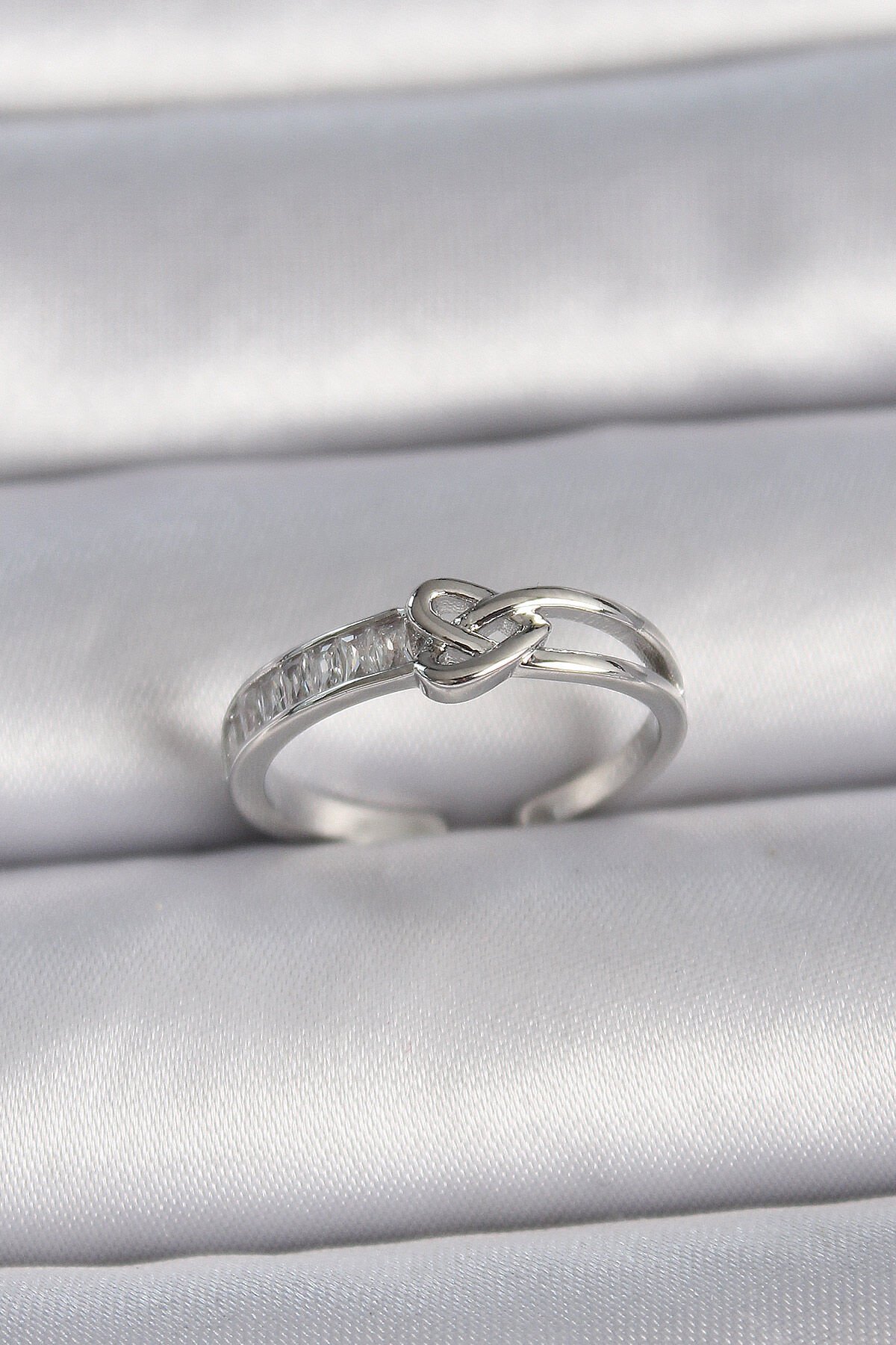 Pirinç Gümüş Renk Ayarlanabilir Zirkon Taşlı Düğüm Kalp Model Kadın Yüzük
