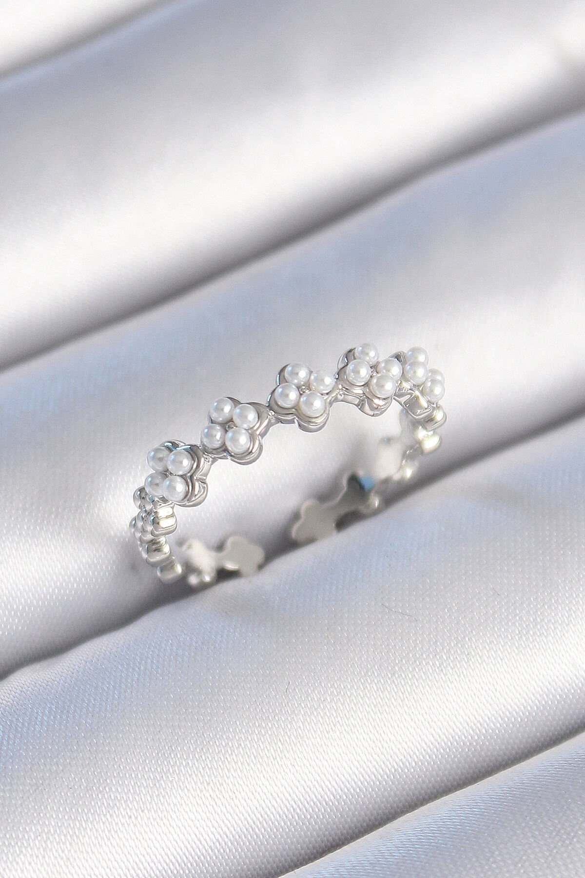 Pirinç Gümüş Renk İncili Yonca Model Kadın Yüzük