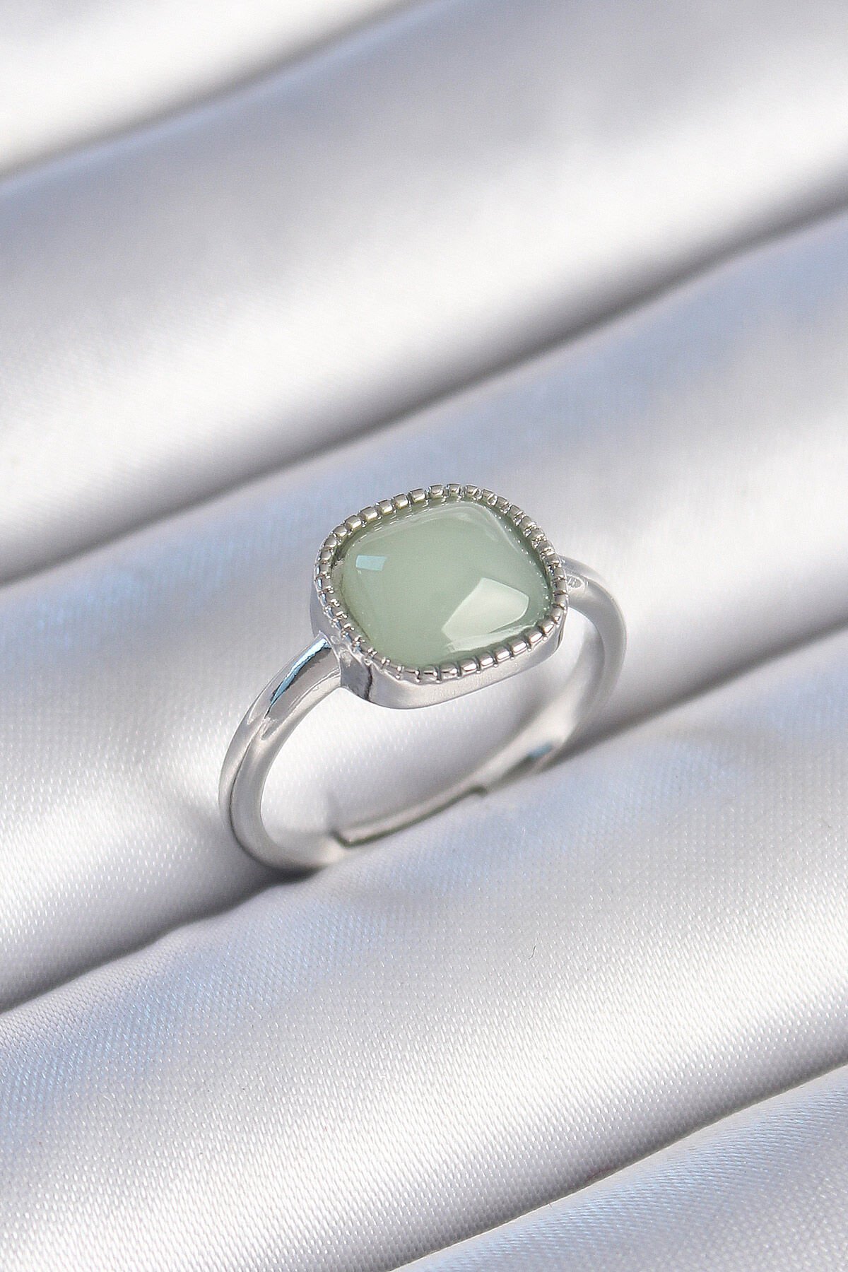 Pirinç Gümüş Renk Yeşil Kare Mineli Kadın Yüzük