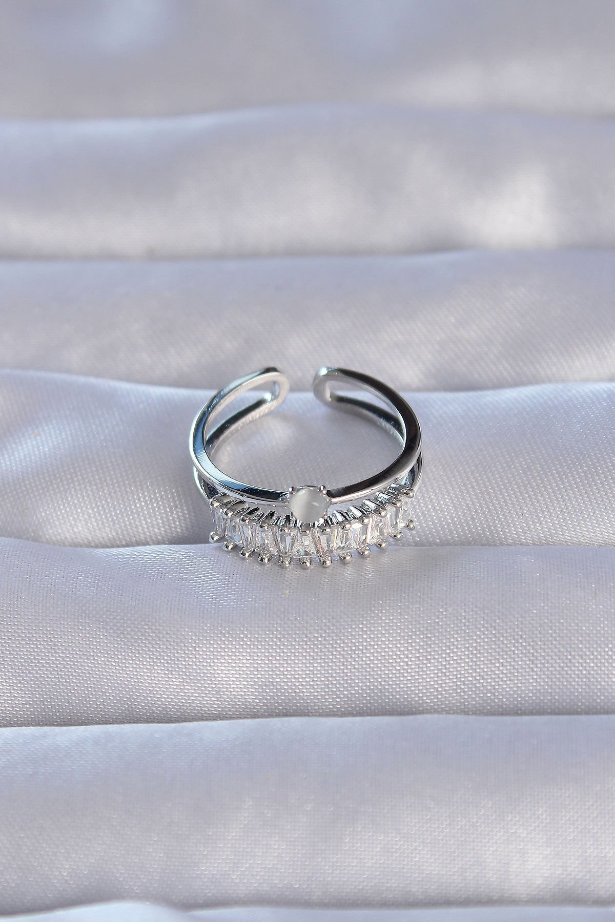 Pirinç Gümüş Renk Zirkon Taşlı Baget Su Yolu Model Ayarlanabilir Yüzük