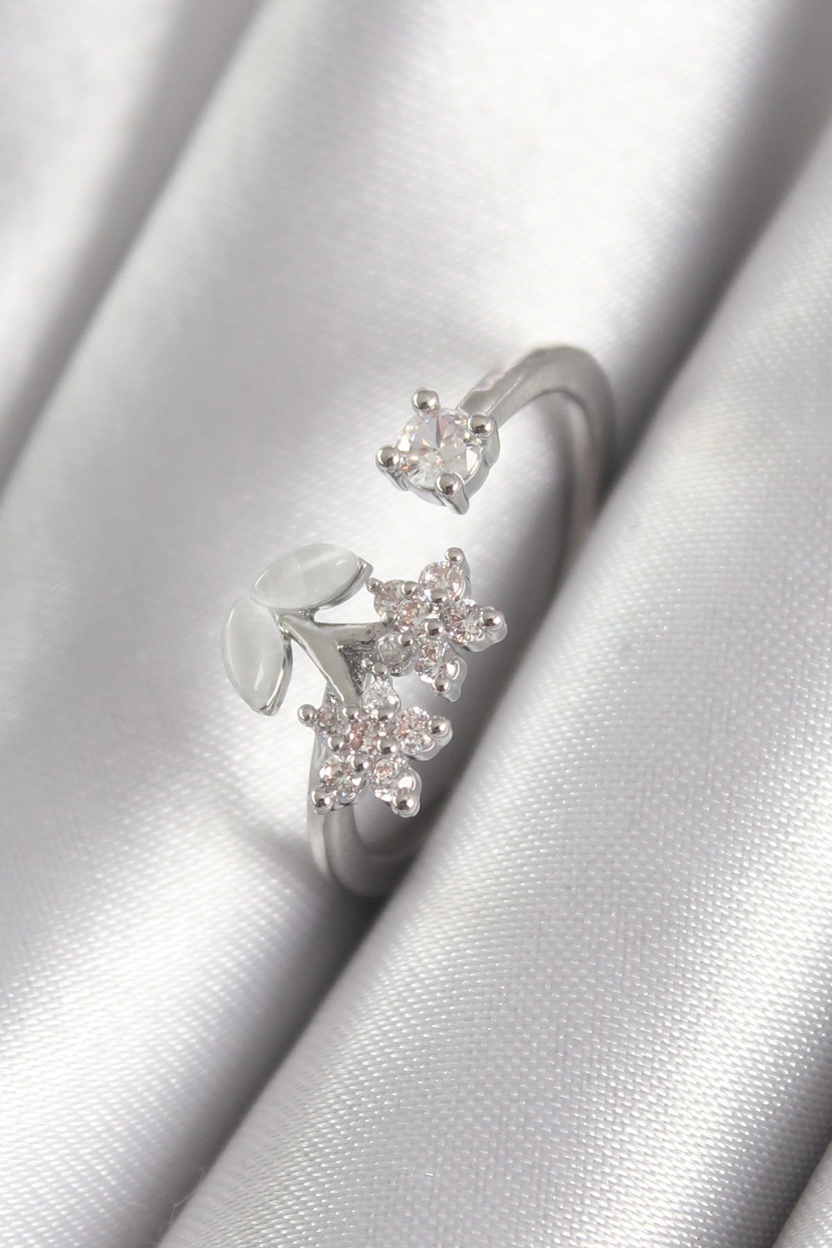 Pirinç Gümüş Renk Zirkon Taşlı Çiçek Model Kadın Yüzük