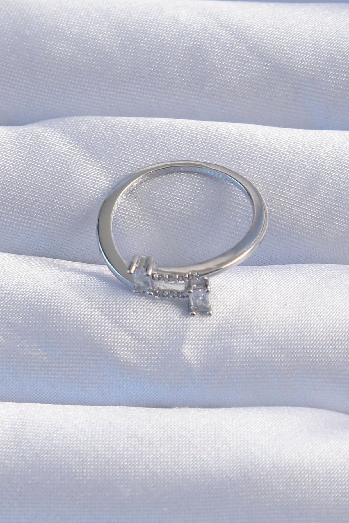 Pirinç Gümüş Renk Zirkon Taşlı Geometrik Ayarlanabilir Yüzük