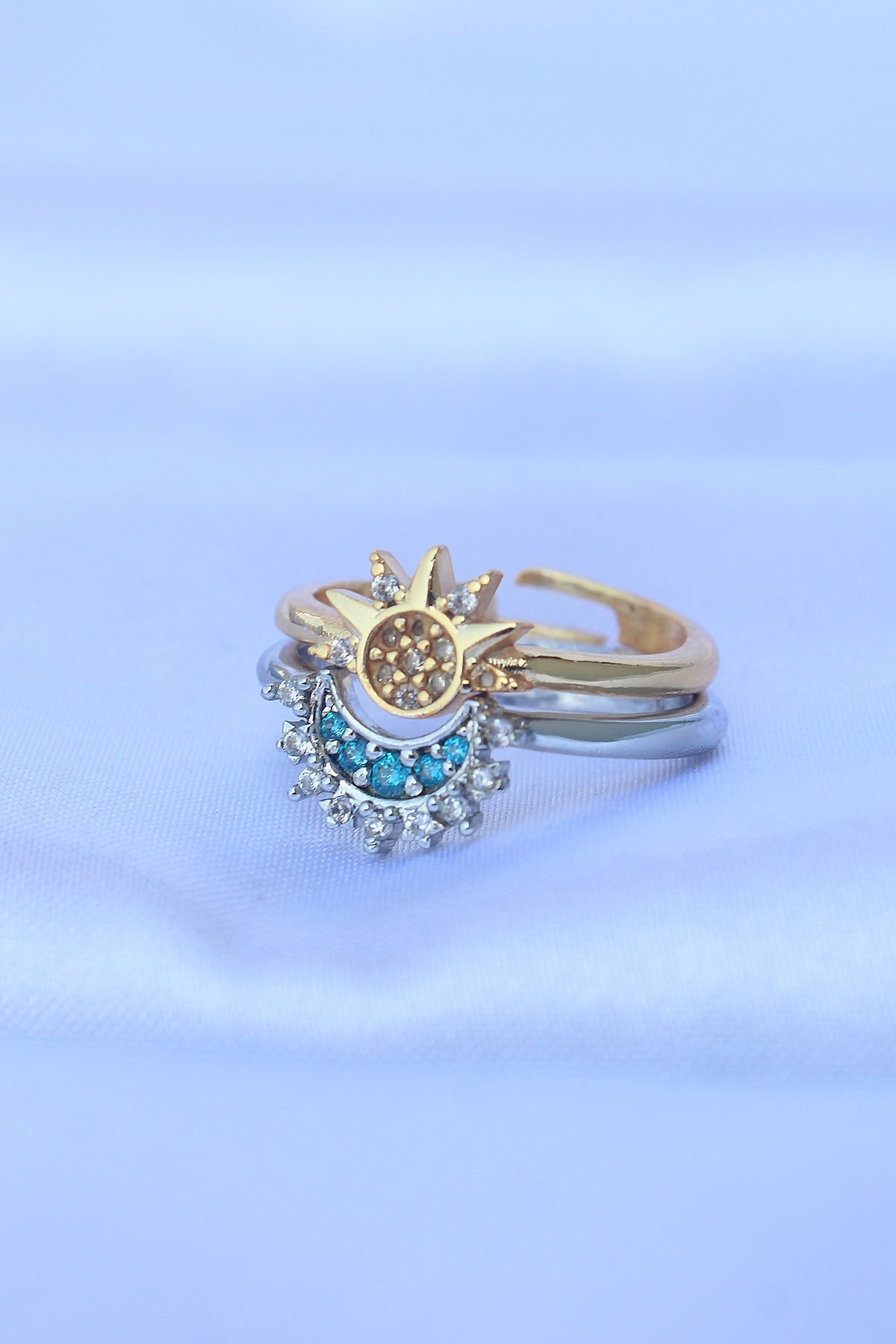 Pirinç Zirkon Taşlı 2li Ayarlanabilir Arkadaş Yüzüğü