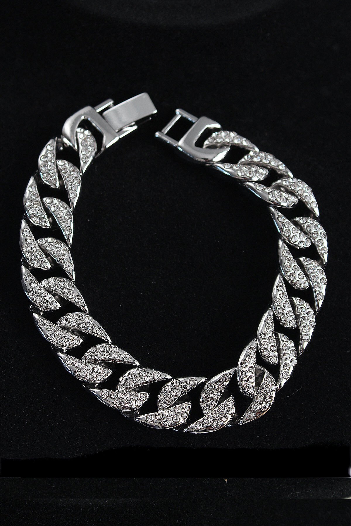 Pirinç Zirkon Taşlı Cuba Gurmet Model Gümüş Renk Erkek Bileklik