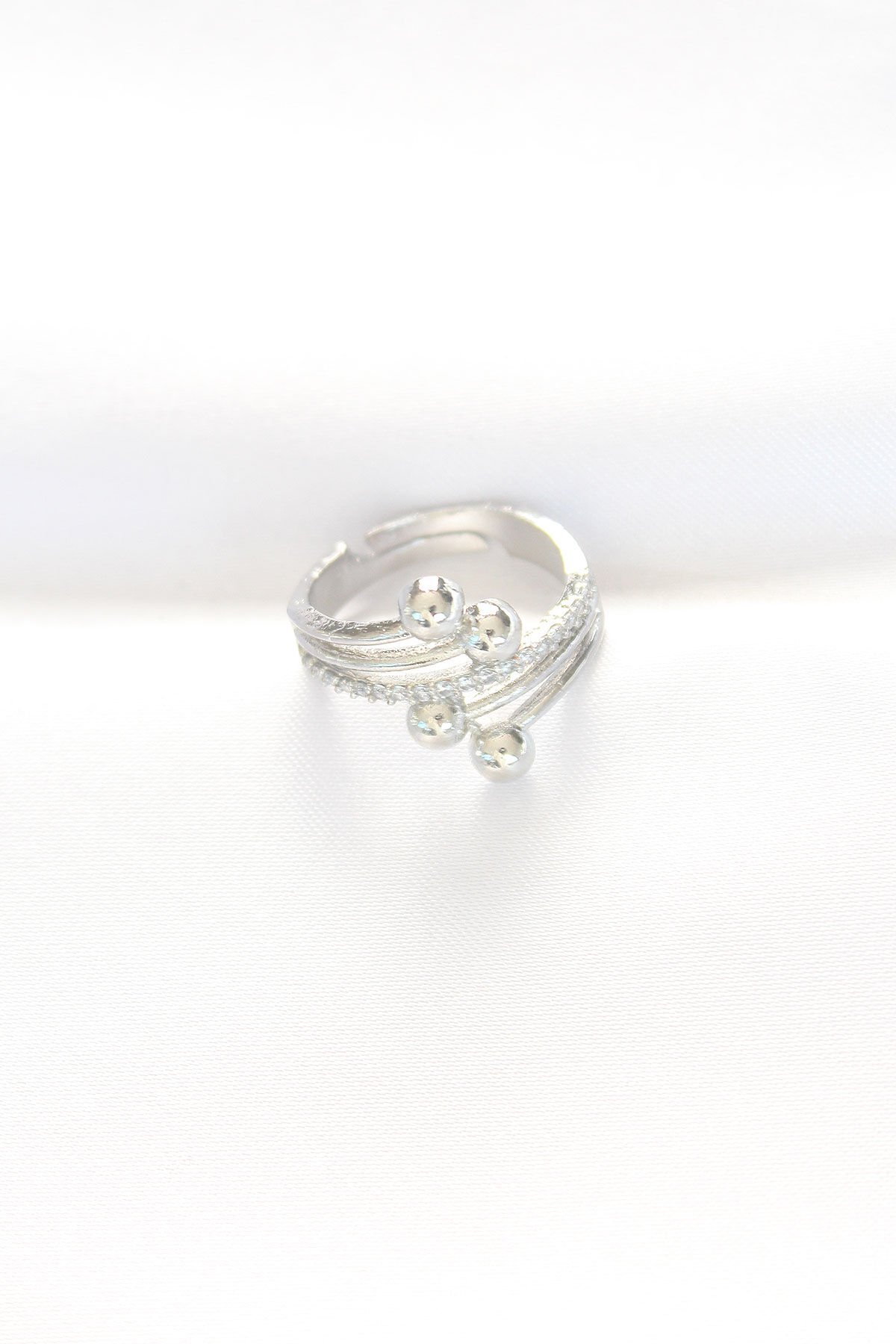 Topçuk Model Zirkon Taşlı Silver Renk Ayarlanabilir Yüzük